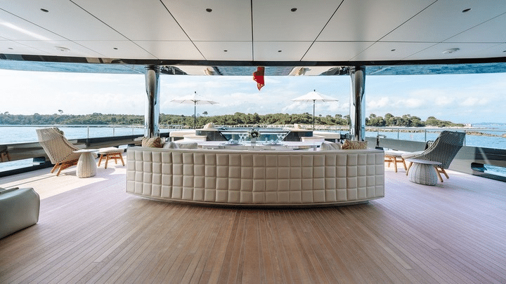 The area comprises approximately 9.75m x 6m and has direct access from the 4 lower guest staterooms.